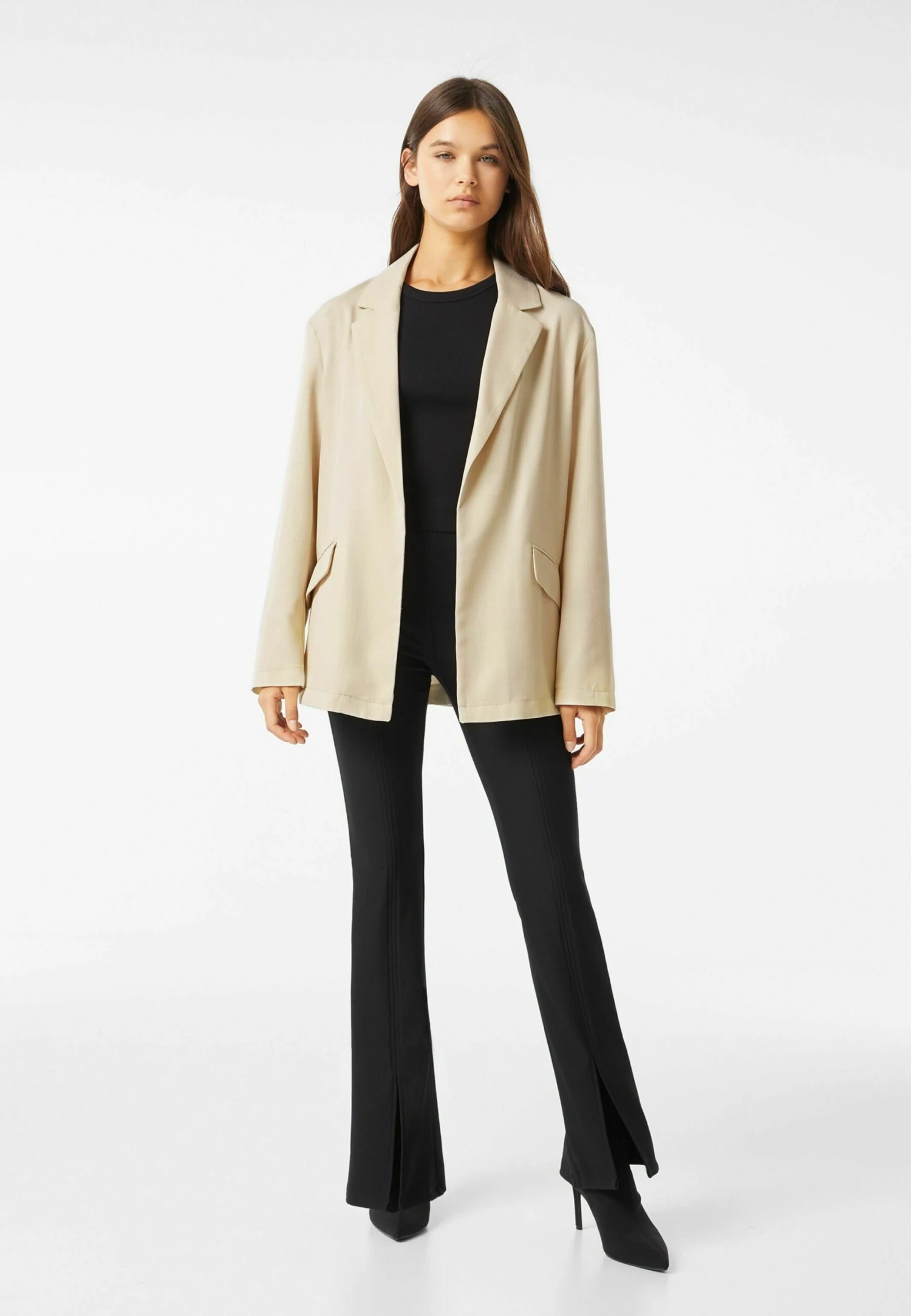 BERSHKA Flowing Blazer – Manteau Court – Stone